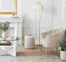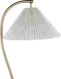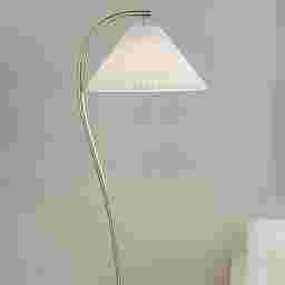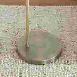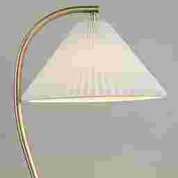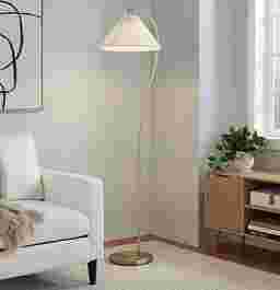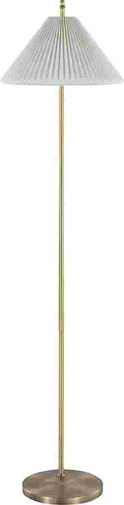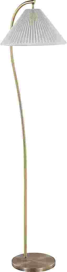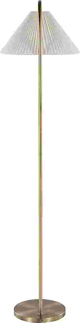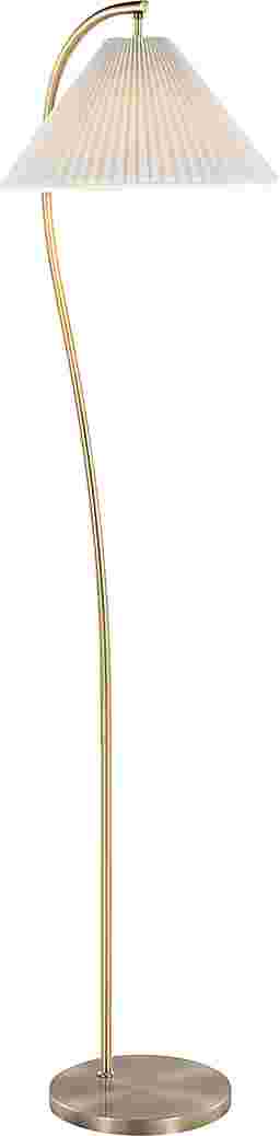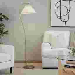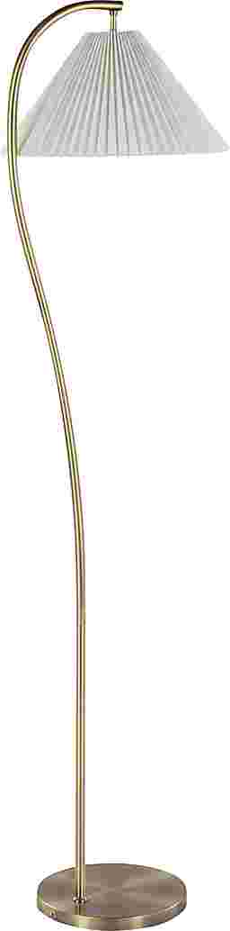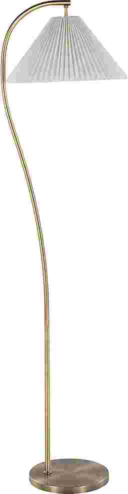 Fall in love with the opulent design of the Arndt Lane Gold Floor Lamp. With a curved gold metal base and a pleated linen empire shade, this unique floor lamp will create an eye-catching aesthetic to amplify the style in any room. Whether placed in your living area, bedroom, or study, this lamp effortlessly enhances any interior, making a bold statement while exuding understated sophistication. Partial assembly may be required.