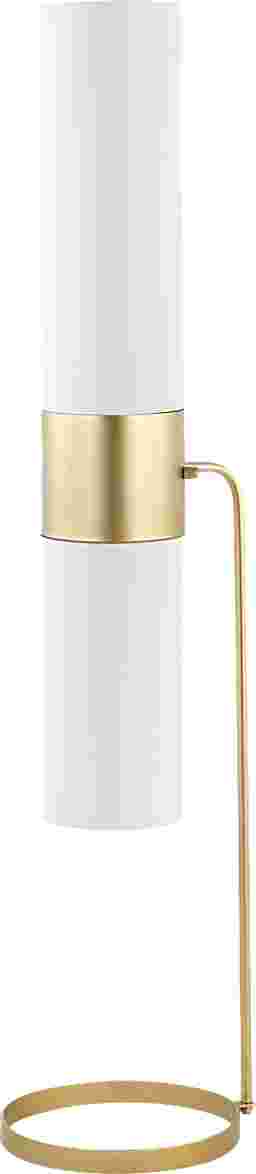 A fashion-forward designer favorite, the Badger Cay Gold Floor Lamp boldly embraces the celebrity-chic feel of modern minimalism. This lamp's contoured gold arm and base are stylishly juxtaposed with the stark lines of its columnar white fabric shades, making it a must-have in any contemporary space. Partial assembly may be required.