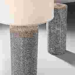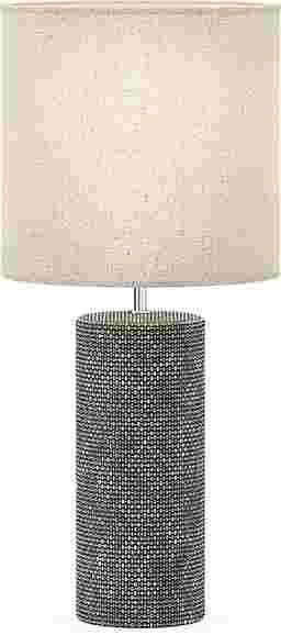 Add a natural vibe to a space with the hemp-like textured Banner Lane gray table lamp that features a linen fabric drum shade. This lighting piece offers a ceramic construction that works well with both Bohemian and modern decor styles. Partial assembly may be required.