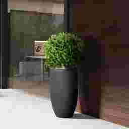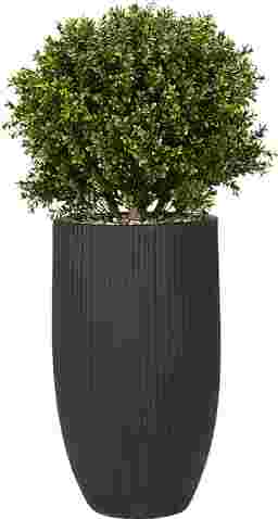 Refined and effortlessly lush, the Buis Green artificial boxwood plant brings timeless greenery to any outdoor space. Standing 41 inches tall and 23 inches wide, this lifelike boxwood ball adds sculptural elegance without the need for trimming or watering. Nestled in a sleek black fibrecotta planter- it's lightweight, durable, and UV-protected for lasting beauty indoors or out. Perfect for entryways, patios, or interiors that crave a touch of classic charm-minus the maintenance.