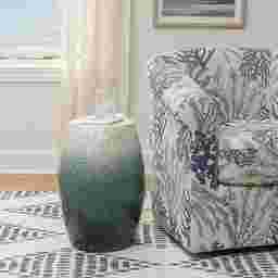 The modern Canmark drum table will add a splash of glamour to any living room or office space. Featuring a capiz shell finish in a stunning white to blue ombre, this unique piece will serve as a beautiful accent in nearly any decor. This round drum table is perfect for displaying small decor items such as candles, vases, and picture frames.