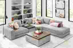 Discover the unlimited possibilities of the Drew & Jonathan ModularThree collection, thoughtfully designed to deliver the utmost in comfort and flexibility. Contemporary in style and upholstered in rich gray chenille, the tailored look of this innovative seating solution is accentuated by deep lounge seats offering the indulgent luxury of ultra-comfortable custom feather, fiber and down blend cushions. Each piece is upholstered on all sides, creating endless opportunities for reconfiguration and individual use. The extra-large console features a retracting USB hub for convenient charging. Under the console's sliding wood-top table is maximum space for storage of even the bulkiest relaxation essentials. Select a preconfigured design or visit a showroom to learn about individual components and create the modular solution perfect for your space and style. Includes LAF chair, 1 console, 1 wedge and 1 RAF chaise. Upholstery: 100% Polyester.