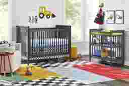Timeless charm meets gentle nursery comfort in the ingeniously designed Modern Colors changing table. This versatile piece offers a safe and convenient spot for daily care routines. Two spacious shelves provide open storage for diapers, wipes and more easy to reach essentials. Iron ore finish keeps the look nice and versatile. Tapered spun legs complete the design with a chic, modern touch that coordinates seamlessly an array of nursery styles. Changing pad sold separately.