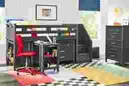 Kids Modern Colors Iron Ore Twin Step Loft With Loft Chest, Bookcase And Desk