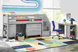 Kids Modern Colors Light Gray Twin Step Loft With Loft Chest And Desk