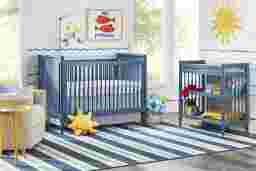Timeless charm meets gentle nursery comfort in the ingeniously designed Modern Colors changing table. This versatile piece offers a safe and convenient spot for daily care routines. Two spacious shelves provide open storage for diapers, wipes and more easy to reach essentials. Slate blue finish keeps the look nice and versatile. Tapered spun legs complete the design with a chic, modern touch that coordinates seamlessly an array of nursery styles. Changing pad sold separately.