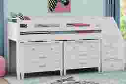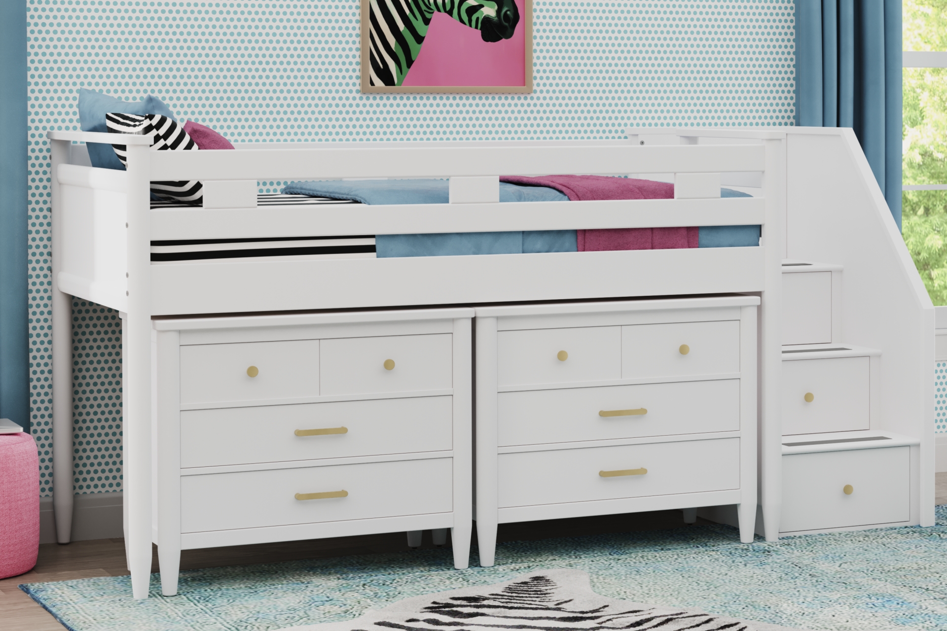 Kids Modern Colors White Full Step Loft With Loft Chests
