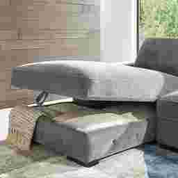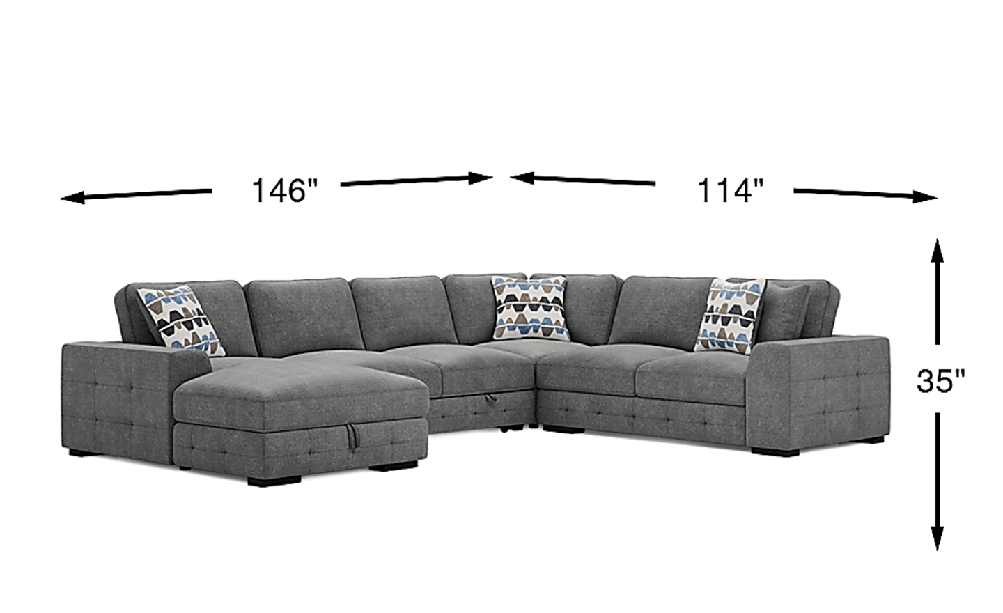 Create a lively space with the Marcola sectional. Upholstered in soft woven fabric, this piece comes in an ash gray color. Contemporary in style, the sectional features a convenient storage chaise, giving you plenty of room for extra blankets, pillows and more. Sleek track arms and tufted detailing add to the stylish appearance, while matching accent pillows bring a bit of color. Upholstery: 100% Polyester
