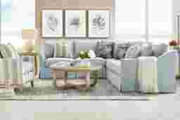 From the moment you walk through the door, drop your keys and say, "Whew, what a day," the Pacific Grove collection from Cindy Crawford Home is there with the comfort and serenity you need to unwind in style. Deadlines, to-do lists and everything else can wait, especially when you're welcomed by a sectional wrapped in the cool, coastal blue of a perfectly tailored slipcover. The soft woven fabric offers the perfect reminder of what comfort really feels like while plush cushions invite you to stretch out, sprawl or simply lounge as daylight dims and evening settles in. Effortless curves, courtesy of the chic flair arms, bring subtle sophistication to an already breathtaking silhouette. Just when you think this look couldn't get any better, tapered block legs and artfully patterned toss pillows step in to complete the picture-perfect style. This L-shaped sectional includes a left arm facing loveseat alongside a right arm facing sofa. Upholstery: 50% Polyester, 50% Cotton