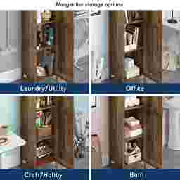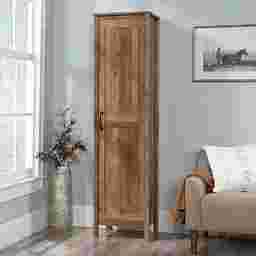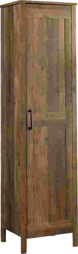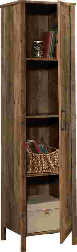 Discover a convenient and versatile storage space without sacrificing personal style with the Peachshack brown storage cabinet. Behind the large door of this single-door storage cabinet is a hidden storage area that includes two adjustable shelves, one fixed shelf, and a bottom shelf for customizable storage options. The adjustable shelves of this rustic cabinet are ideal for a variety of items, from pantry staples to cleaning products, or crafting and office supplies. This 4-shelf storage cabinet has plenty of customizable space. Its slim, single-door stature makes this narrow storage cabinet a handy asset for smaller spaces. Customer assembly is required.