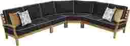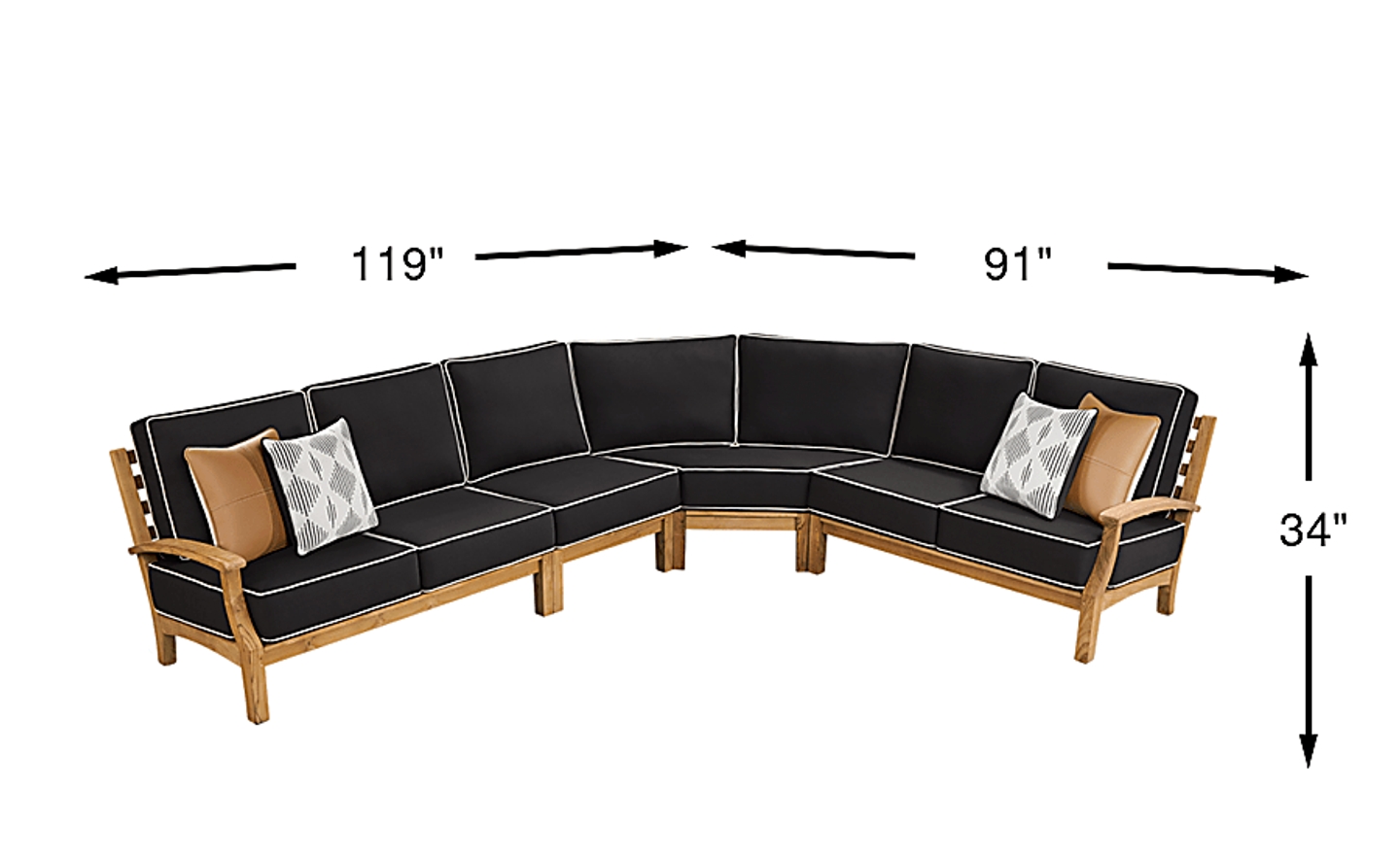 Designed with modern flair to make the most of your patio, the Pleasant Bay sectional combines classic lines with a contemporary silhouette to stunning effect. Crafted from solid teak in a natural finish, this sectional features a slat back for a breezy, casual feel. UV-resistant and colorfast outdoor performance cushions in a charcoal color feature coordinating welting details and offer ultimate comfort for outdoor seating. Patterned accent pillows provide this sectional with a decorative finishing touch. Select cushion colors also available in Sunbrella fabric.