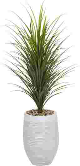 Transform your patio, garden, or balcony with the Travni Green 58 in. Artificial Grass. Standing tall at 58" tall and 29" wide, this lush, maintenance-free greenery adds a vibrant touch of nature to any space, without the upkeep. Built to withstand the elements, this plant is UV protected and designed for long lasting beauty. The sleek white planter is made from fibrecotta that is light and durable perfect for outdoor use. Enjoy the beauty of greenery year-round with this lifelike artificial grass that stays fresh and vibrant and always in season.