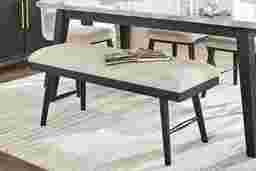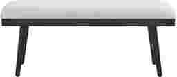 No more reservations with the Viola bench's lively feel, bringing the goodwill and cheer of a fun night out home. Constructed of wood solids and ash veneers, this contemporary piece boasts an irresistible set of color contrasts between its black finish and soft gray upholstered seat. The base features canted legs and a pair of leg supports for an irresistible minimalist silhouette.